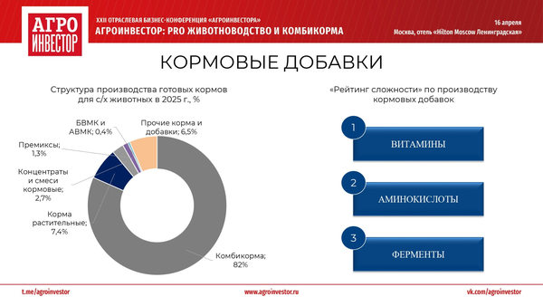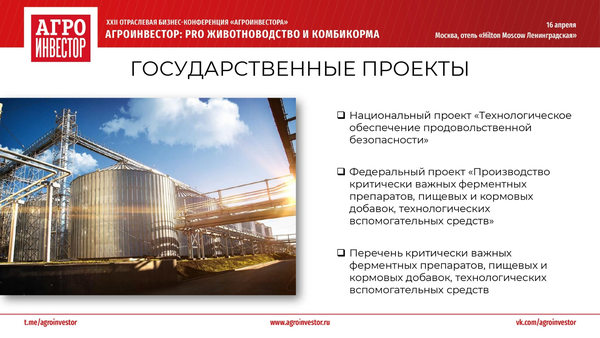 16 апреля 2026 года в Москве состоялась XXII отраслевая бизнес-конференция «Агроинвестор: PRO животноводство и комбикорма», в рамках которой, спикеры-эксперты обсудили перспективы развития отечественного животноводства и кормовой индустрии.